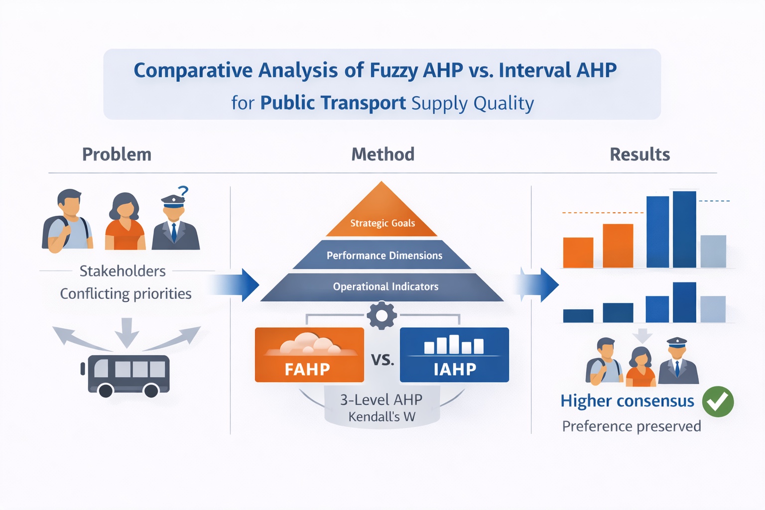 Multi-Criteria Decision Making (MCDM), Fuzzy Analytic Hierarchy Process (FAHP), Interval Analytic Hierarchy Process (IAHP), Stakeholder Analysis, Public Transport Quality, Kendall’s Coefficient of Concordance (W), Urban MobilityAbstract