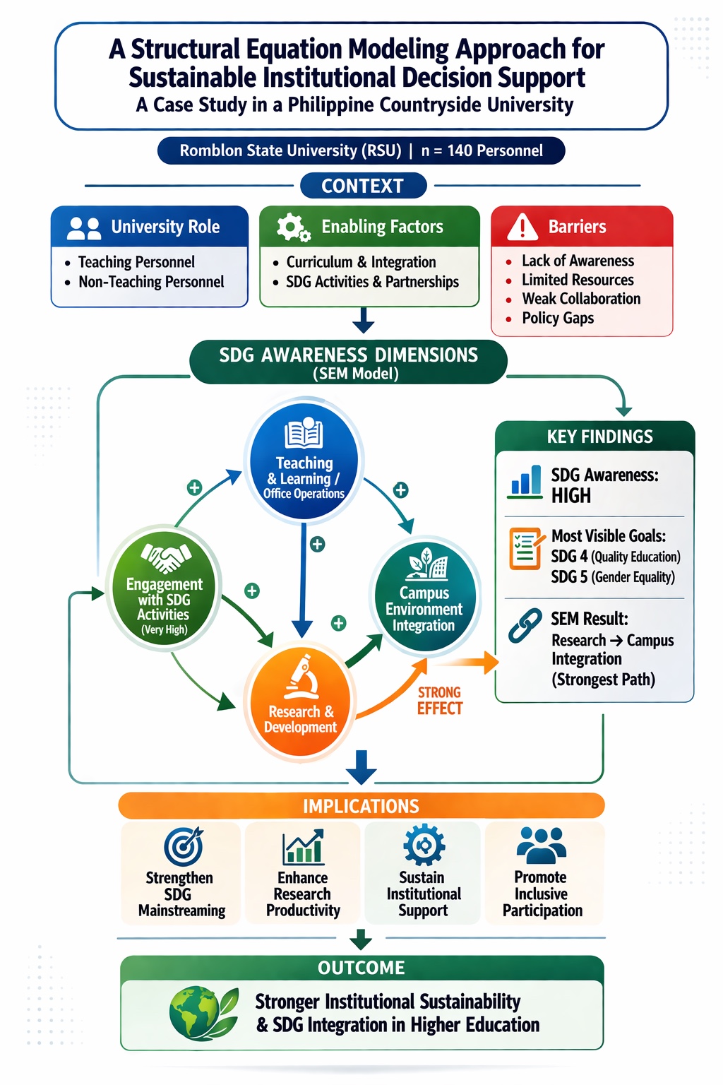 Sustainable Development Goals; SDG awareness; sustainability integration; higher education; Structural Equation Modeling; PhilippinesAbstract